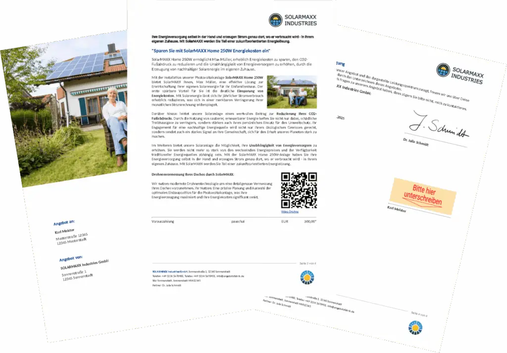 Der salesTALKER® überzeugt Deine Kunden und Interessenten mit individualisierten Angebotsdokumenten, die vom Deckblatt bis zum Unterschriftfeld auf den Kunden zugeschnitten sind.